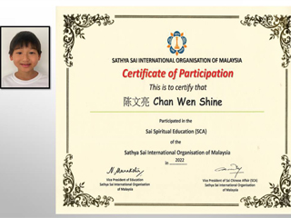 中文组线上心育班于2022年12月10日星期六在线上举行2022年度颁发奖状仪式,给学生们在本年度的表现予以肯定。
