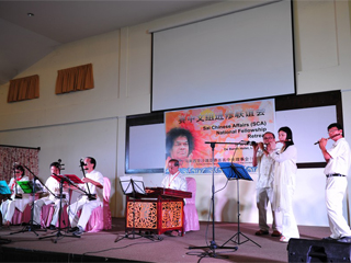 晚会的开场节目是思菩提和东甲赞诵组的合唱团呈献数首赞歌,以风琴伴奏,团员用特有的演唱风格,歌颂慈悲为怀的赛世尊。接着浮羅交怡中心德育班同学表演印度舞,7位小演员穿着鲜艳夺目的服装,随着耳熟能详的Gayatri mantra配乐,柔美地展示了绚丽的舞姿,全场响起热烈的掌声。